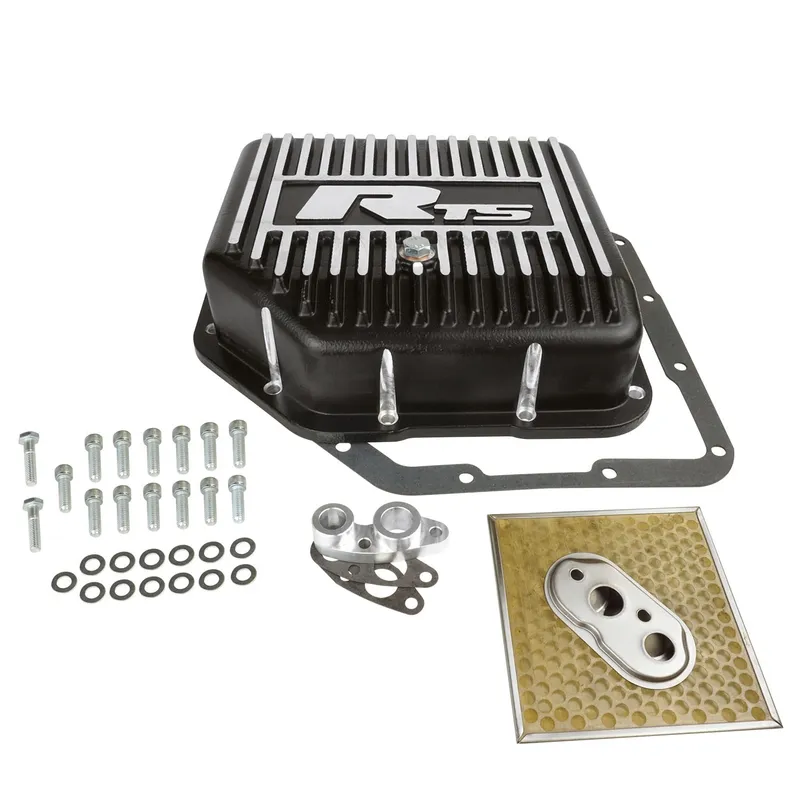 RTS' race series cast aluminium transmission pans are constructed from A356-T6 aluminium and are cast with thick internal and external fins, adding additional strength and increasing heat dissipation abilities. These deep pans increase fluid capacity by almost 1.5-2.5 litres over stock OE styled steel pans. These features combine to help dissipate heat quicker and therefore decrease transmission and fluid operating temperatures, prolonging the life of all related components. All pans come with a 4.5 mm thick silicone reinforced gasket, magnetic drain plug and mounting hardware, while others also come with filter extensions and accessories.