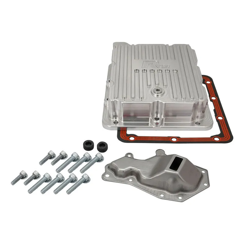 RTS' Race series Billet Aluminium transmission pans are constructed from 6061-T6 aluminium and are thick internal and external fins, adding additional strength and increasing heat dissipation abilities. These deep pans increase fluid capacity by almost 1.5-2.5 litres over stock OE styled steel pans depending on which one you are removing. These features combine to help dissipate heat quicker and therefore decrease transmission and fluid operating temperatures, prolonging the life of all related components. All pans come with a LLube Loc Style gasket, magnetic drain plug AN6 ORB,  deep filter and mounting hardware, while others also come with filter extensions and accessories.