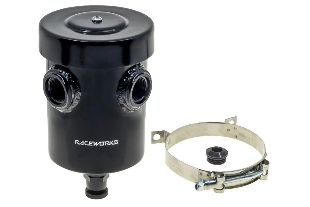 Raceworks Catch Can Internal Breather Tank 1L With Drain Tap Black – Y Ports.