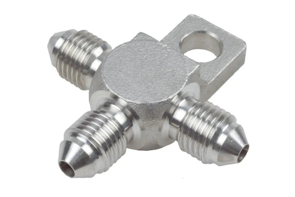 Raceworks AN-3 Male Flare Tee (Stainless). Comes with bracket.