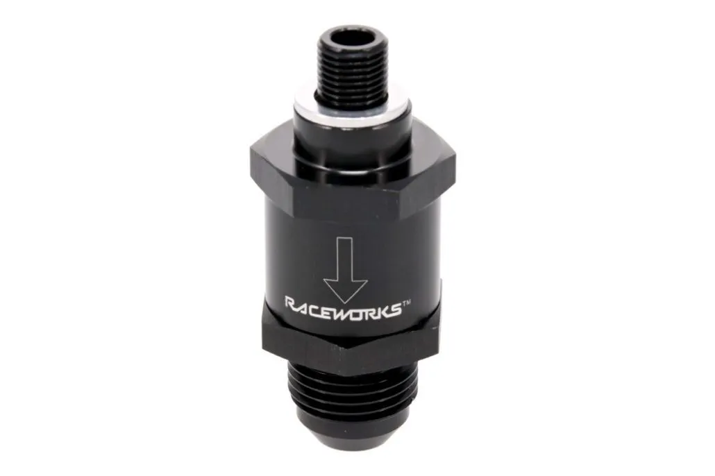 Raceworks M10x1.0 Metric to AN-8 One Way Valve.