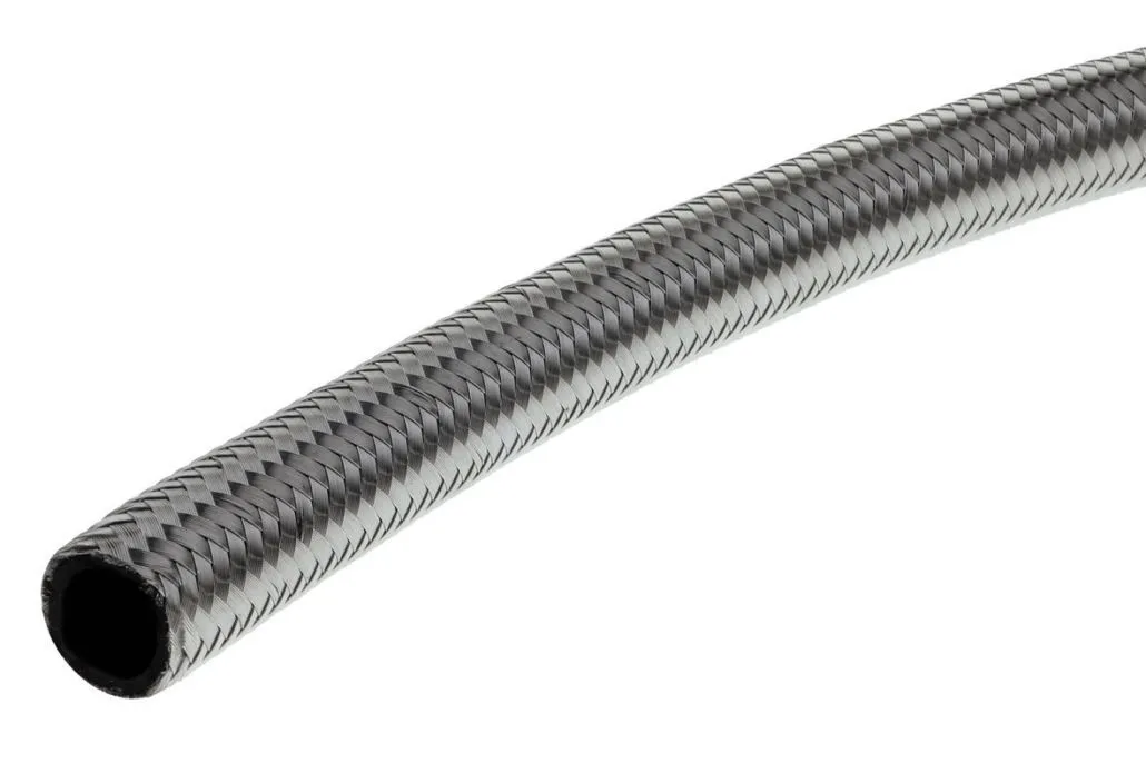 Raceworks 100 Series Stainless Steel Braided Hose is resistant to high pressure, temperature, abrasion and corrosion. The internal hose is a reinforced Chlorinated Polyethylene (CPE) synthetic rubber with a stainless steel double outer braid. Suitable for use with regular fuel, E85, E10, methanol, oils, synthetic lubricants and coolant.