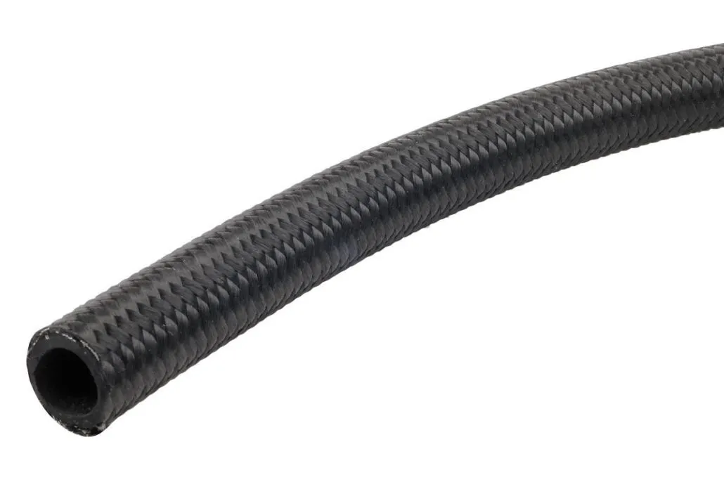 Raceworks 120 Series Black Nylon Braided Hose is lighter than traditional stainless steel braided hose. It is resistant to high pressure, temperature, abrasion and corrosion. The internal hose is a reinforced Chlorinated Polyethylene (CPE) synthetic rubber with a light weight black nylon outer braid. Suitable for use with regular fuel, E85, E10, methanol, oils, synthetic lubricants and coolant.