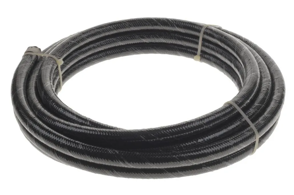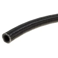 Raceworks 140 Series Black Stainless Steel Braided Hose is resistant to high pressure, temperature, abrasion and corrosion. The internal hose is a reinforced Chlorinated Polyethylene (CPE) synthetic rubber with a black double outer braid. Suitable for use with regular fuel, E85, E10, methanol, oils, synthetic lubricants and coolant.
