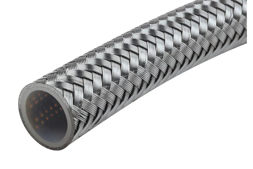 Raceworks 200 Series Teflon Braided Hose is constructed from a PTFE (Teflon) inner tube that is compatible with all fuels, oils and nitrous, including brake and clutch fluids. The PTFE (Teflon) tube is covered by a stainless steel outer cover that is durable, abrasion and expansion resistant. The Raceworks 200 Series Hose is the best option for use on fuel systems as it won't allow the permeation of fuel smell, and has the highest pressure and temperature rating in the range of Raceworks hoses.