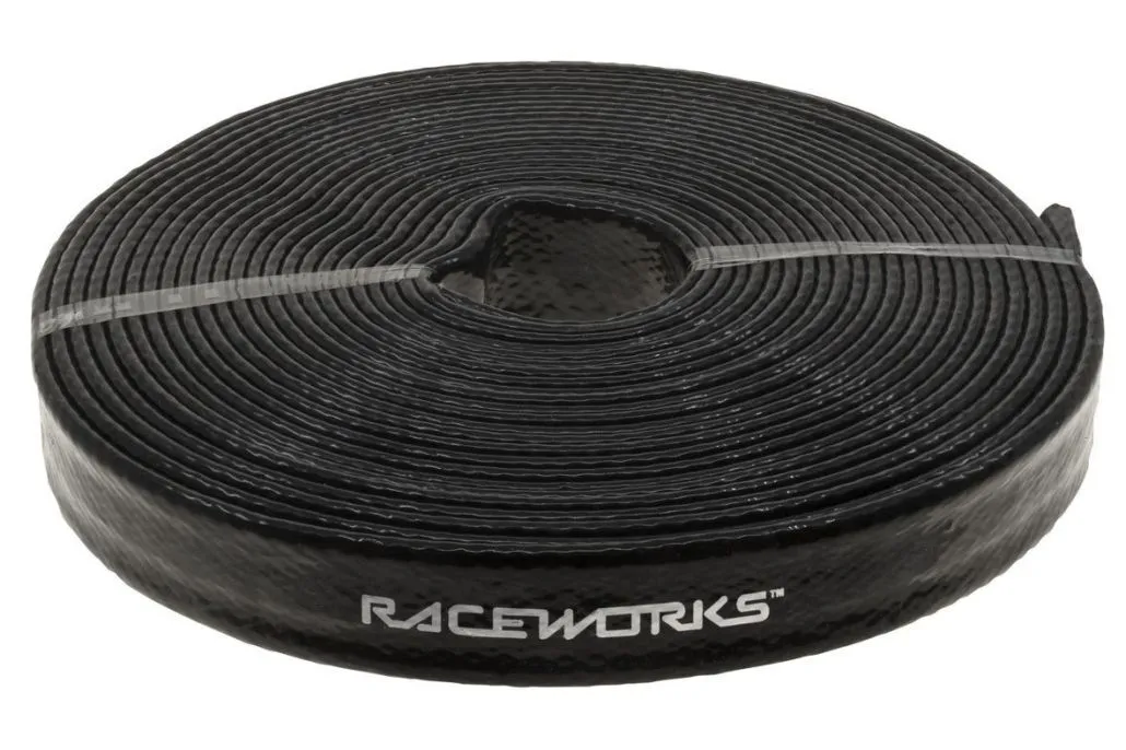 Raceworks Fibreglass Heat Sleeving is constructed using a Fibreglass braid, and covered in a black silicone rubber. It forms a protective barrier in high heat environments. Withstands a continuous operating temperature of 260degC, and has a maximum short term exposure of 1100degC.