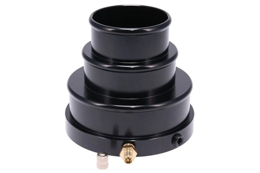 Raceworks Boost Leak Testers are machined out of Billet Aluminium, and encorporate twin 1/8" NPT Ports. A Schrader valve is included, and second port may be used with a pressure gauge. This allows you to pressurise the intake, and monitor pressure drop over time. These may be used with compressed air, or a smoke/fogger machine.