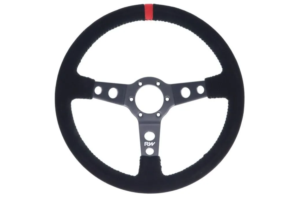 Raceworks Suede Dished Steering Wheel – Black|Black Stitching. 350mm 6x70mm bolt pattern.
