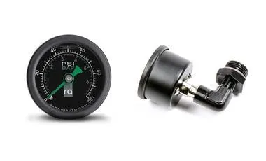 This high-accuracy fuel pressure gauge is suitable for all fueling applications. It features an acrylic lens with a silicone filled dial that reads from 0 to 100psi (0 to 6.9 BAR) with +/- 2% accuracy. Silicone fluid prevents the needle from vibrating for easy pressure readings. The internal bubble is normal. Rugged stainless 1-5/8" OD steel case (1-3/4" OD bezel) with nickel plated male 1/8" NPT fitting. Available with black bezel and housing only.