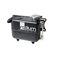 The Radium Coolant Expansion Swirl Tank features three ports that use -6AN to 9/16-18 O-ring adapters (not tapered pipe threads) for a positive seal. The main tank is a 2-piece design constructed of cast aluminum. The two halves (shown below) are welded together along with a CNC billet aluminum cap receiver which mates to any standard 32mm "import" style pressure cap.