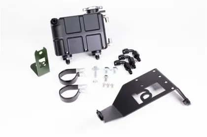 Included are three -6AN female 90 degree hose ends that screw onto the three -6AN male coolant tank port fittings. They are lightweight black anodized aluminum and are used for push-lok style 3/8" ID hose.