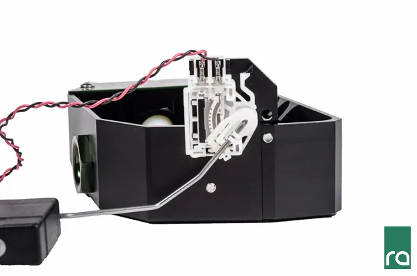 To install, simply place the Denso fuel level sender onto the adapter and slide downwards until the tab locks into place. There are multiple integrated holes permitting different float heights. Included are two M5x0.8x12mm stainless steel bolts.