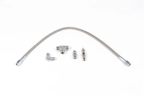 The kit also contains a Schrader valve that can be used for pressure testing, bleeding air out of the line, fuel sampling, or relieving fuel pressure before service. This kit can be used as single-use tool, or it can be left on the vehicle as a permanent component.