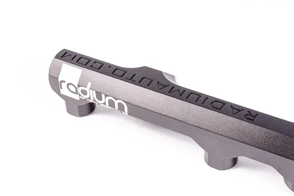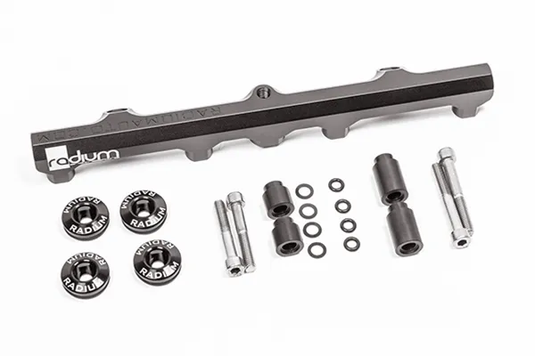 This Radium Engineering fuel rail is a direct bolt-on with all twin cam Nissan KA24DE engines. Manufactured with a large 0.69" internal bore, the fuel rail can support all necessary engine power requirements. The Radium fuel rail converts the OEM side feed fuel injector setup to top feed allowing the use of high flow 14mm O-ring fuel injectors (not included).