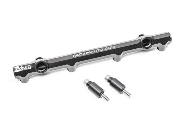 This Radium Engineering fuel rail is CNC machined from extruded 6063 aluminum, black anodized, and laser etched for a high quality surface finish.