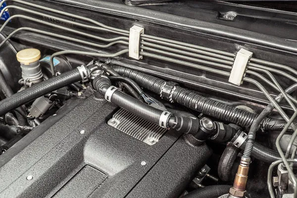 Two double-ended press-in SAE fittings are provided to replace the crankcase vents on the valve covers. In addition, this system balances the intake and exhaust side of the crankcase with a large 10AN crossover hose exactly how the Nissan engineers intended. These SAE quick connect fittings are lightweight, streamline, and simple to install and service.