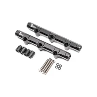 Manufactured with a large internal bore, the fuel rails can support all necessary engine power requirements. They are CNC machined from solid 6061 aluminum, black anodized, and laser etched for a high quality surface finish.
