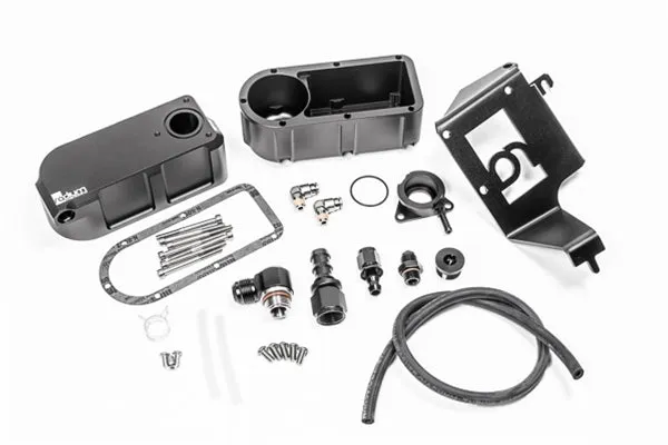 Because of continuous and intense heat cycling with track use, plastic coolant tanks have a reputation of failing over time. Fortunately, the rugged 2-piece Radium Engineering replacement is CNC machined and anodized for increased longevity. And because aluminum is a superior thermal conductor material, heat transfer is further improved. Additionally, the metal construction is robust enough to use in racing applications.