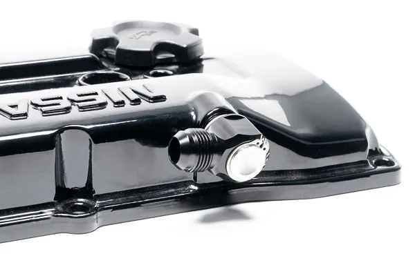 This low profile 10AN fitting is a direct replacement for the valve cover barb found on the intake side of the Nissan KA24DE S13/S14 valve cover.