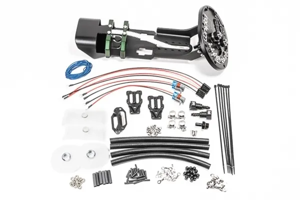 This fuel hanger completely replaces the factory in-tank fuel pump module and allows 1 or 2 aftermarket pumps to be used. The OEM fuel level sensor is reused. No modifications are required for fitment under the fuel pump access cover.