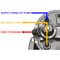 PLUMBING The fuel pump outlets merge through a built-in fuel pressure regulator and exit the MPFST-R via a single outlet simplifying external plumbing. And because the compatible pumps utilize check valves, staging is permitted. This "FUEL PUMP OUTLET" port is 10AN ORB threaded but comes preinstalled with a -8AN male adapter fitting. The "OVERFLOW", "SUPPLY", and "RETURN" ports are all 8AN ORB threaded but come preinstalled with -6AN male adapter fittings. All of these fittings can be swapped out with different sizes (sold separately). Fuel enters the large canister from 2 sources: the built-in FPR and the lift pump. During this process, the fuel flow gets redirected and runs tangential through the canister creating a swirl pot. This helps eliminate unwanted air bubbles and fuel foam that can affect fuel pump and engine performance.