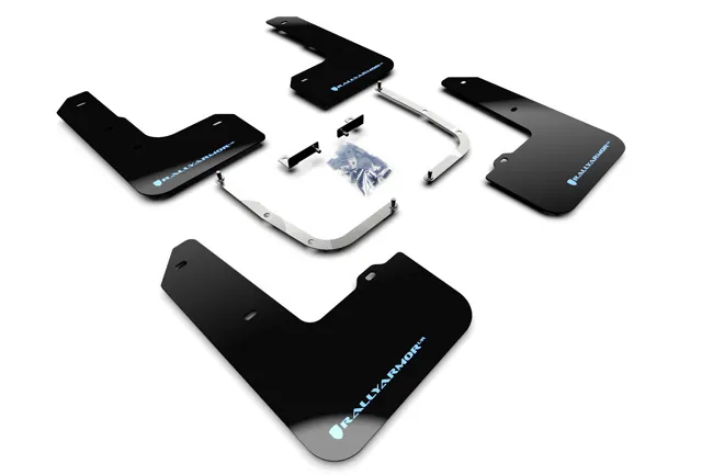 Rally Armor UR mud flaps nest right into that automotive enthusiast equation. Treating each application as unique and distinct from all others, we specialize in stainless steel mounting brackets that serve as mounting points which means zero drilling, zero factory fender liner modifications. The upside to a fully and carefully executed design is the straightforward installation, the comprehensive kit which includes 100% pure polyurethane made in the USA mud flaps mated to thoughtfully selected hardware. You’re getting proven performance in our mud flaps. No questions over warping during prolonged heatwaves or cracking, bottoming out in compacted ice because Rally Armor UR flaps stay flexible. Not many materials tout the same credentials.