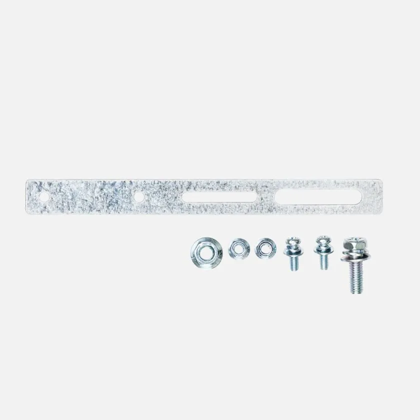 The bracket is designed to be fastened to the main unit with 2 x M4 bolts either at right angles, in-line or diagonally across the main unit. It also features an M6 slot and nut/bolt allowing connection to the vehicle on a suitable M6 stud or M6 hole.