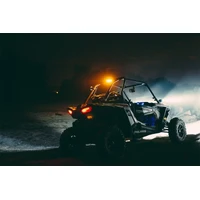 The RIGID Chase rear facing LED light adds safety and functionality to any UTV, rail, buggy, Jeep, or other off-road application by packing reverse, courtesy, strobe, running, and brake lights into a single compact ligth. A halo of powerful LEDs in red, amber, or blue around the perimeter of the aluminum housing can be used as a strobe for racing and chase applications, running light, or third brake light. The center portion of the RIGID Chase functions as a 715 lumen white light suitable for use as a Reverse or area light, and there's also a smaller downward-facing courtesy light for illuminating the cargo area. Whether it's used individually or wired in series, the RIGID Chase LED light is packed with features at a great value. Own The Night with RIGIDs rear facing Chase LED light.