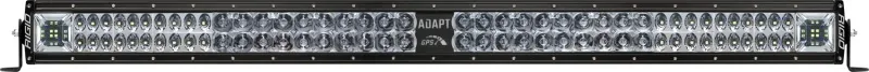 The RIGID Adapt E-Series LED Light Bar features the same style and construction as RIGIDs legendary E-Series, from the high-strength aluminum heat sink to the unbreakable polycarbonate lens. On the inside, however, the Adapt E-Series contains cutting-edge technology. The Adapt E-Series takes off-road lighting performance to a whole new level with two layers of adaptive response to your vehicle and driving conditions. The first layer of adaptive response is RIGIDs new Active Power Management (APM) system which continuously monitors input voltage to determine the status of the vehicles electrical system. If the voltage is stable, the Adapt E-Series will continue to utilize all available power to give you the most output possible. If the available voltage to the light begins to drop due to insufficient power, RIGIDs APM system will gradually reduce the lights power consumption until the vehicles voltage stabilizes. The second layer of adaptive response featured in the Adapt E-Series is RIGIDs proven Active View Technology. This technology uses an internal GPS module to determine the vehicles speed, allowing the Adapt E-Series to properly distribute all available power among three unique optic zones. Utilizing the three zones allows the Active View Technology to create the most optimal beam pattern to suit the vehicles speed. As the vehicles speed changes, power is dynamically routed through various optics. Utilizing scene optics for low speed, driving optics for moderate speed and spot optics for high speed driving. Rather than cycling between pre-set modes, power is transferred gradually between optic zones showcasing the beam transitions. This allows for seamless transition between beam patterns offered in the Adapt E-Series making it easier than ever to Own The Night.