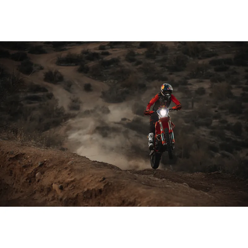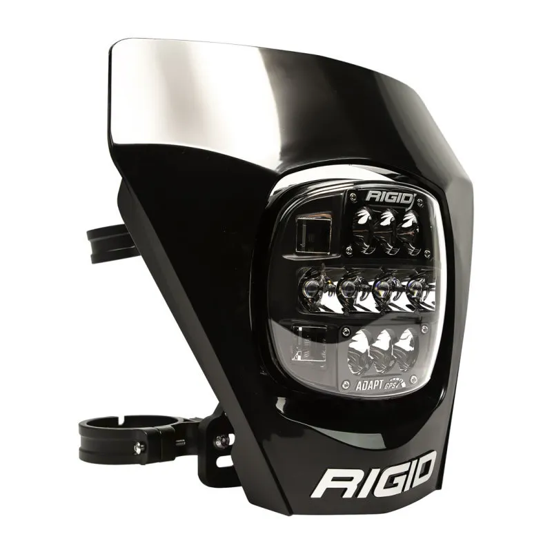 The RIGID Adapt XE has a signature look that is unlike any other off-road motorcycle LED light on the market. This dirt bike light features a high-strength aluminum heat sink and an impact resistant polycarbonate lens. On the inside it contains cutting-edge technology. The Adapt XE utilizes two layers of adaptive response. The first layer is RIGID's Active Power Management (APM) system which monitors input voltage to determine the status of the vehicles electrical system. If the voltage is stable, it will continue to utilize all available power to give you the most output possible. If the available voltage begins to drop due to insufficient power, the APM system will gradually reduce the power consumption until the voltage stabilizes. The second layer, the Active View Technology, uses an internal GPS module to determine the bikes speed, allowing the Adapt to properly distribute all available power among three optic zones. Utilizing the three optic zones allows the Active View Technology to create the ideal beam pattern to suit the riders needs. As the vehicles speed changes, power is routed through various optic zones utilizing scene optics for low speed, driving optics for moderate speed and spot optics for high-speed driving. Power is transferred between optic zones allowing for a transition between beam patterns and providing much brighter and more natural looking light and reducing eye fatigue. The Adapt XE features a Magnetic Reed power clip for additional customization. Leaving the switch in place limits the light to consuming a maximum of 2.7 amps. When the switch is moved the light will consume up to 5.6 amps when all zones are activated. The Adapt XE fits most bikes and the wiring harness and custom handlebar switch is included. Whether running a factory stator with voltage regulator or have additional power available, the Adapt XE will give you the light you need, when you need it, where you need it. Own The Night with RIGIDs Adapt XE motorcycle light.