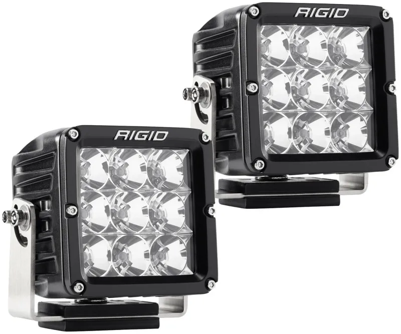 With the enormous popularity of RIGIDs original pod D-Series LED light came the need for a slightly larger, more powerful lighting solution. The RIGID D-XL PRO boasts more light than ever before in a housing that measures 4 x4 inches. Recent improvements in LED technology allow the D-XL Series PRO to feature up to 170 percent more raw lumens while maintaining the efficiency that is the hallmark of the entire RIGID product line. Featuring an unbreakable polycarbonate lens, durable UV-resistant polyester powder coat, stainless steel hardware, and a vibration isolator, the D-XL Series PRO is available with your choice of beam pattern optics. Recent updates include prominent RIGID branding and blacked-out circuit boards for a more refined look. Whether it is off-road, power sports, general automotive, mining, agriculture, or fire and rescue, the D-XL PRO is perfect for any application that requires a high intensity LED light. Own The Night with RIGIDs D-XL extra large pod LED light.