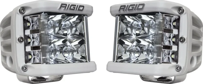 One of RIGIDs most versatile, compact lighting solutions just got better with the RIGID D-SS PRO, Dually-Side Shooter LED pod light. Perfect for any application that requires a wide spread beam, including A-Pillars, fog Lights, and motorcycle applications. The D-SS PRO incorporates powerful optics and recently improved LED technology for greater output with the added benefit of additional LEDs aimed to the side for a much broader beam. The D-SS PRO packs a powerful punch with up to 102 percent more raw lumens. The D-SS PRO feature 120 degrees of horizontal lighting coverage. The main forward-facing LEDs are available with RIGIDs advanced Spot, Flood, or Driving optics, so there is a D-SS PRO lighting solution for nearly any application. The D-SS PRO LED lights are available in pairs with three side-shooting LEDs on one side of each light, or in single applications with a pair of side-shooting LEDs on both sides of the light. Only RIGID provides a broad, powerful lighting solution in such a compact package. Own The Night with RIGIDs original side shooter LED light.