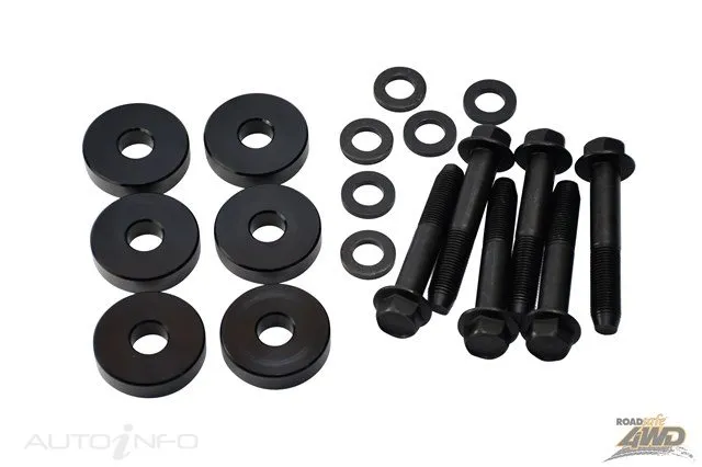 When lifting IFS Vehicles, the Constant Velocity (CV) joints are put on an increased angle. This increased angle of the CV joint during operation can accelerate the wear on the joint and put additional stress on the CV boots, leading to splitting and eventually premature failure of the CV. This wear is accelerated further if larger (wider) wheels and tyres are fitted. K-Frame 12mm Spacer Kit (includes 6 spacers bolts) compatible with Nissan Patrol Y62 RR