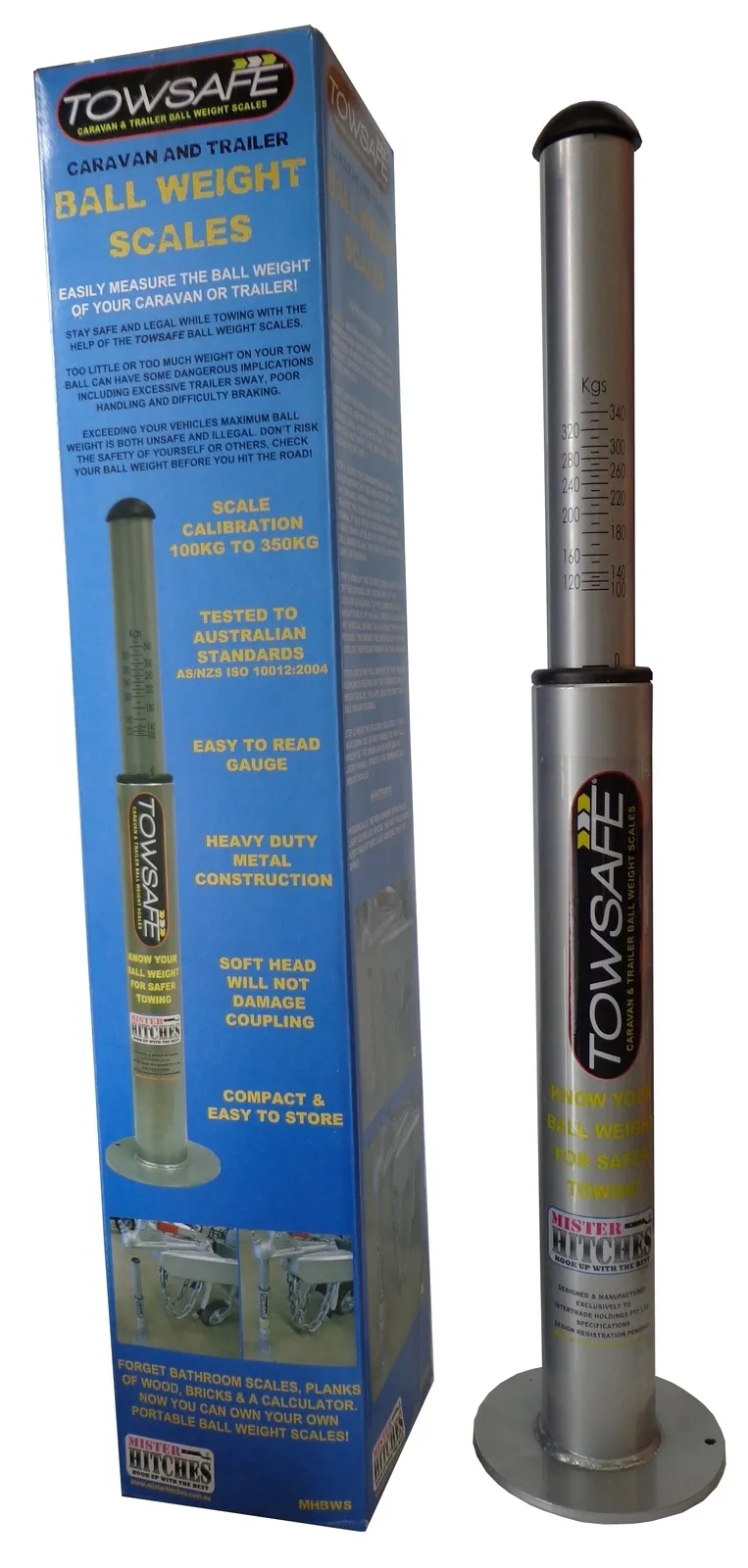 Planning a 4WD Trip, towing your Camper Trailer or Van, then knowing your ball weight before you tow is essential. The Roadsafe Towsafe Caravan and Trailer Ball Weight Scale’ now makes it easy to measure the ball weight of trailers or caravans. Too little or too much weight on your tow ball can have some dangerous implications including excessive trailer sway, poor handling and difficulty braking. Exceeding the vehicles maximum ball weight is both unsafe and illegal. Don’t risk the safety of your self or others, check your ball weight before you hit the road! Made from high quality material, the Towsafe Ball Weight Scales are tested to Australian & ISO International Standards, with a measuring range of 100kg to 350kg (shown in 10kg increments), the scales are inexpensive, easy & quick to use.