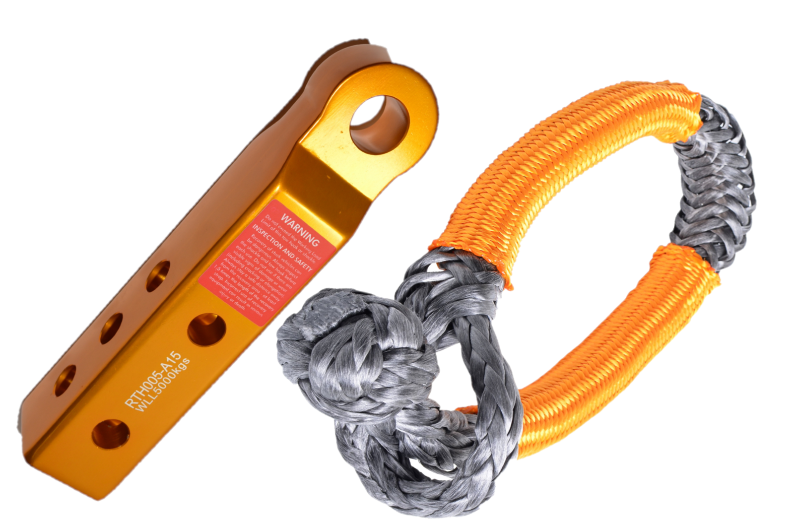 Roadsafe offers a Heavy Duty Rear Recovery Tow Hitch featuring Twin mounting holes for either vertical or horitonzal mounting depending on recovery angle. Destruciton tested to WLL 5000kgs, and designed to suit a Heavy Duty tow bar with 50x50mm tow hitch (Please ensure the towing system is rated and designed for this application). The Recovery Hitch itself is rated at WLL 5000kgs, and is recommended for use with a 4700kgs bow shackle. To make it simple choice, Roadsafe offer this item as a single hitch or the hitch/shackle combination. Aluminium Recovery Tow Hitch - 50mm - Gold (Extended) Soft Shackle