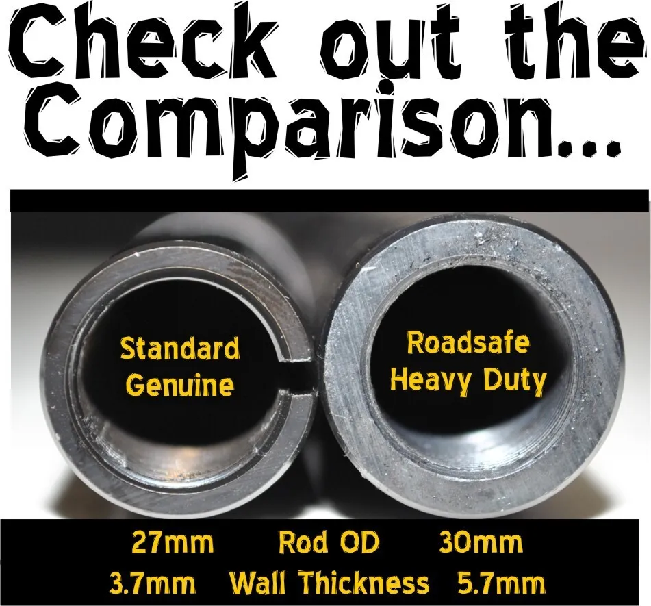 Roadsafe offer a full range of Heavy Duty Drag Links and Track Rods to suit for a heap of Aussie found 4WD’s. It’s not a case of ‘one style for all’ at Roadsafe. The range includes a ‘Startup’ upgraded version, a ‘Serious’ 4WD version, and the ultimate ‘MF Comp’ style in 4140 Chromoly Steel. Compatible with common Landcruisers and Patrols. Even the ‘Startup’ version for Patrols is a huge upgrade over standard, featuring 30mm OD with 6.5mm wall thickness, in addition to Heavy Duty replaceable tie rod ends.