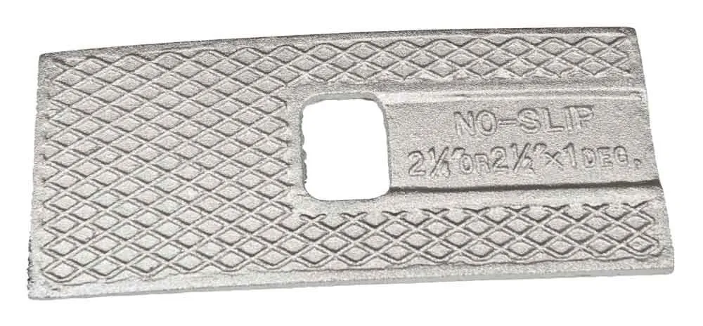 A range of Roadsafe Leaf Spring ‘Caster’ Wedges have been developed to suit for universal applications. Used on vehicles with front and rear leaf springs, Leaf Spring Wedges aid in correcting the caster angle and work to eliminate driveshaft vibration issues. Roadsafe Leaf Spring Wedges are manufactured at 63mm wide, with centre hole to allow for proper positioning in the spring pack & diff. It is recommended to fit a 3deg wedge to the front when using extended shackles, with wedges also fitted to the rear where required. When fitting in the front the ‘thickest’ part of the wedge always goes toward the front of the vehicle. Roadsafe Leaf Spring Wedges are available in 4 sizes offering caster correction of 1, 2, 3 or 4 degrees.