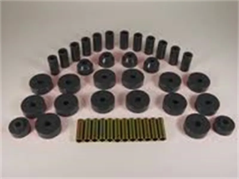 In this black total bushing kit from Prothane, polyurethane based suspension, driveline and chassis components have been designed as an upgrade to the soft factory rubber components. Precision fabrication ensures a perfect fit. Holds super grease for quiet operation and provides necessary rigidity.