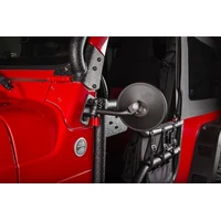 The new Rugged Ridge Stubby Quick Disconnect Mirrors give you the visibility you need for safe driving when you take the doors off your JK, but with a new 'stubby' arm; delivering a narrower, more off-road friendly profile. Each mirror arm is reduced by three inches, allowing the mirror to hug more tightly to the vehicles body. Available with both round and rectangular mirror heads, Rugged Ridge Stubby Mirrors textured black powder coat looks great on any paint color and installs easily with the included mounting hardware. When it's time to put the doors back on, these mirrors can be removed quickly with a few turns of the convenient thumb screw. A convenient bolt-on mirror solution for when you want to leave the doors at home - also great with tube or safari doors. Includes a pair of mirror heads, mirror arms, mounting brackets, bushings, thumbscrews, gaskets and hardware.