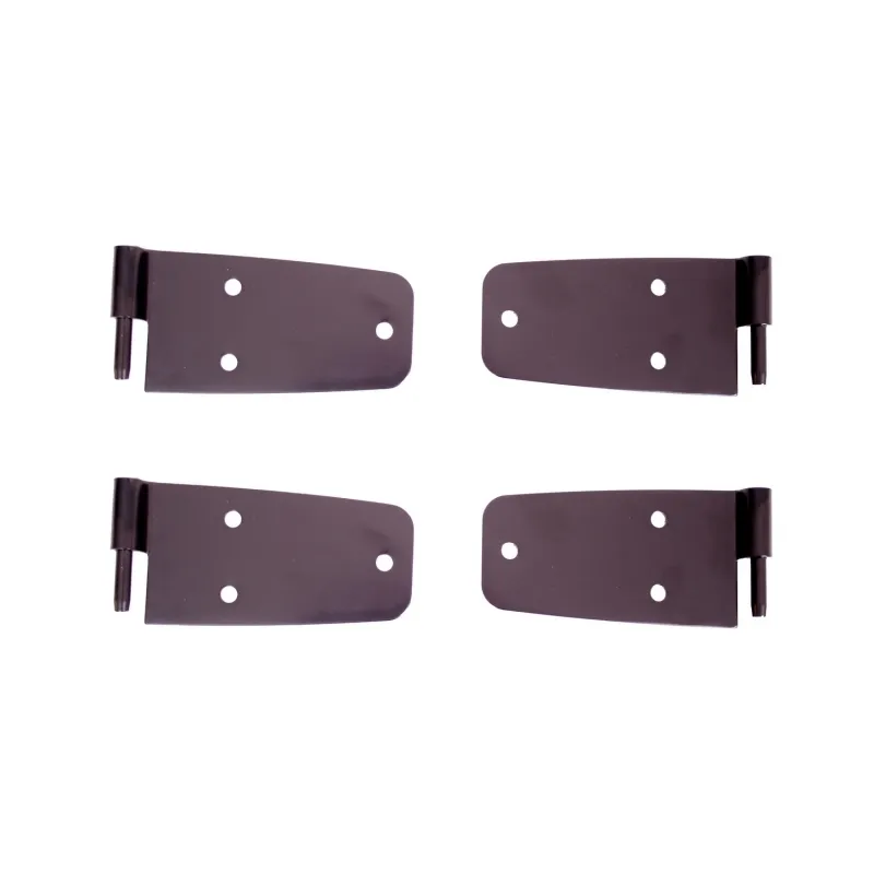 This four piece door hinge kit from Rugged Ridge was powder-coated in a semi-gloss finish to protect your investment against the elements for a long lasting use. This kit offers a direct fit with no modification or drilling required and includes complete hardware to ensure a trouble free installation.