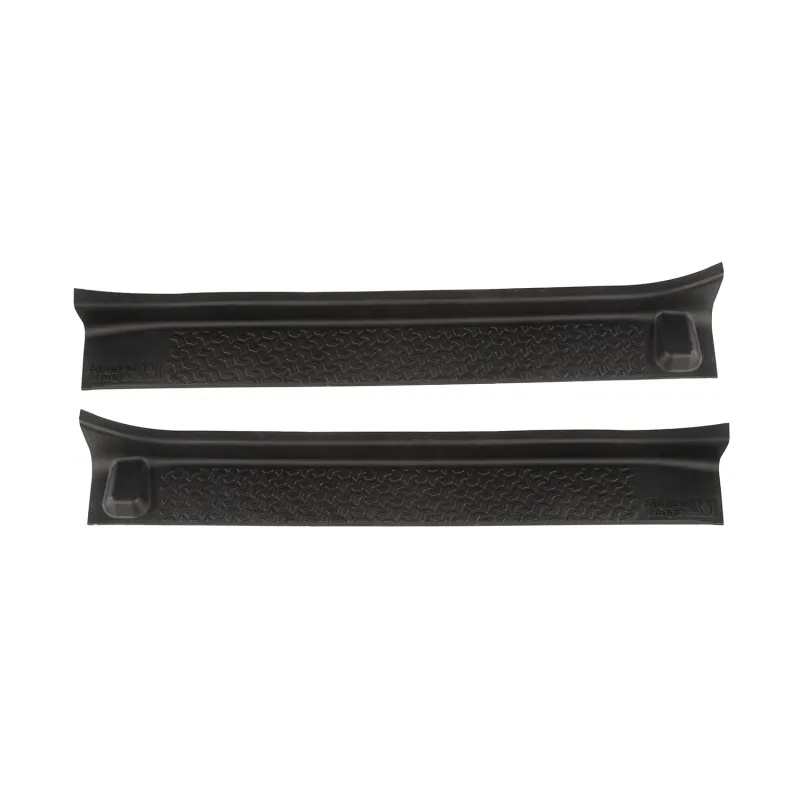 Rugged Ridge created these All Terrain Door Entry Guards to prevent the unsightly scuffs and scratches that happen just by climbing in and out of your Jeep. Defending those unprotected door sills couldn't be any easier. When you install these Door Entry Guards, you'll be preserving your precious paint and adding a cool accent at the same time. Constructed of a super-tough thermoplastic, each guard features an inlaid all-terrain tread pattern so they look just as great as they work- whether the doors are on or off. And installation is a breeze with the provided automotive-grade adhesive foam tape. Sets are available for both 2 and 4-Door JL models. Patent No. D627,285