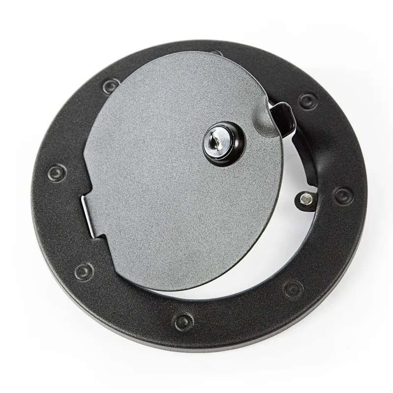 Create a custom look in just a few minutes. This special design fits directly over the existing gas cap opening. The textured black finish complements other textured accessories. Provide added security with this locking version restricting access to the gas cap with an additional lock. They are specially treated to resist blemishes caused by gasoline or other hazardous chemicals.