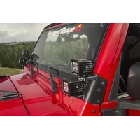 Optimize your off-roading adventure with the best lighting solutions on the market. Designed to accommodate a variety of auxiliary off-road lights, Rugged Ridge designed this dual A-pillar LED light kit to allow you to place lights in positions that yield the most visibility on the trail. Constructed from heavy-duty steel, this kit includes an A-pillar bracket set and four 3-inch square LED driving lights and is easily attached to the lower windshield mount using existing factory mounting holes. No drilling or cutting is required for installation.