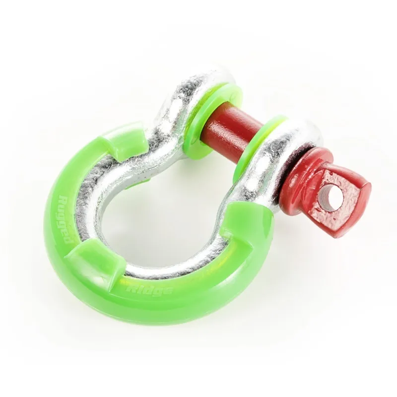 Put an end to the loud clanging and banging of your d-ring shackles for good AND look great doing it! Rugged Ridge D-Ring Isolators are designed to isolate all portions of recovery shackles from contacting your bumper, virtually eliminating the obnoxious noise from your off-road rig. Molded of energy-absorbing polyurethane, these D-ring isolators easily snap over the outer perimeter of your shackle providing complete protection from contact with nearby surfaces while the included urethane washers isolate between the shackle pin and the mounting tab for total coverage. Rugged Ridge D-Ring isolators are available for both 3/4 and 7/8 in. shackles and are molded in a variety of colors to suit your individual tastes or paint scheme: Black, Red, Green, Yellow and, yes, Pink. (Sold in pairs- 2 isolators / 4 washers)