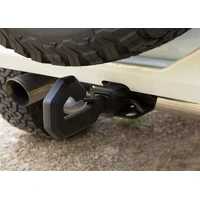 The Rugged Ridge Elite Giga Hook is not just another recovery hook. It?s massive, oversized ?scorpion-tail? styling makes it as attention grabbing as it is functional. Each Elite Giga Hook is tooled from high-strength AISI 4340 carbon steel, packing enough brute strength to manage even the toughest off-road recoveries. A spring-loaded latch closure insures that tow straps stay in place on the Elite Giga Hook, even when the load is released. Available in wide variety of attractive powder coat finishes: Black, Red, Pink, Yellow, Green or a raw paintable finish for those who dare to explore the possibilities. The Elite Giga Hook works with any 2-inch receiver hitch and is guaranteed to take your recovery gear to the next level.