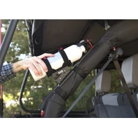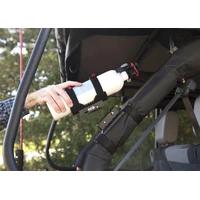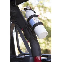 The Elite Fire Extinguisher Holder is the perfect way to store that essential fire extinguisher on your off-road rig. Featuring stunning billet-style cast aluminum construction, durable textured black powder coat and a spring-loaded release mechanism made from 316 Stainless Steel, the Elite Fire Extinguisher Holder sets the standard for both form and function. Designed to work with most 2.5 lb. round extinguishers, the holder can be mounted directly to a roll bar tube or to any flat surface with the included hardware and allows for smooth one-handed access if the need ever arises. (Extinguisher not included). Patent Pending.