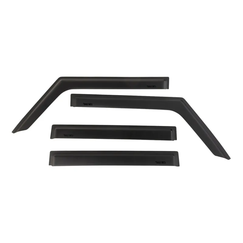 Rugged Ridge Window Visors are designed to vent your Wrangler JL or Gladiator JT interior with a fresh flow of air, reducing stale air and window fogging while improving overall cabin comfort. Wind noise is greatly reduced too as the visor keeps the rain outside as a crisp circulation of fresh air comes in. Rugged Ridge Visors are molded from a durable 2mm thick matte finished acrylic that is scratch-resistant and installs in minutes with the included double-sided automotive grade adhesive. Set does both front and rear doors.