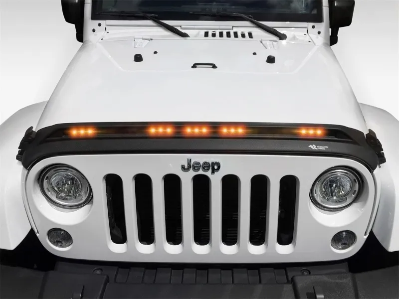 Give your Jeep Wrangler JK / JKU a brilliant appearance upgrade while adding serious protection for the hood and windshield. We molded the LightShield Hood Guard from Dura-Flex 2000 TPO, a material so durable that it's virtually indestructible and yet flexible enough to absorb impacts destined to batter your sheet metal. But the LightShield adds another dimension of protection with a built-in bar of amber LEDs, giving your Jeep a greater level of visibility in low light conditions, not to mention an intense front-end styling accent that's impossible to ignore. Installation is low-impact too, thanks to a 3M automotive-grade adhesive backing, wiring kit, and detailed instructions.