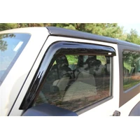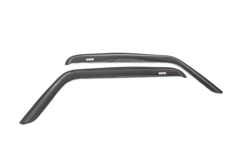 Let the fresh air in and keep the rain out with these side window air/rain deflectors from Rugged Ridge. Featuring a durable scratch resistant 2mm thick smoked acrylic and a low profile design for a precise fit, these deflectors offer a stylish look for the exterior of your JK while helping to channel airflow over your vehicle to reduce wind noise when the windows are open, for a quiet and comfortable ride.