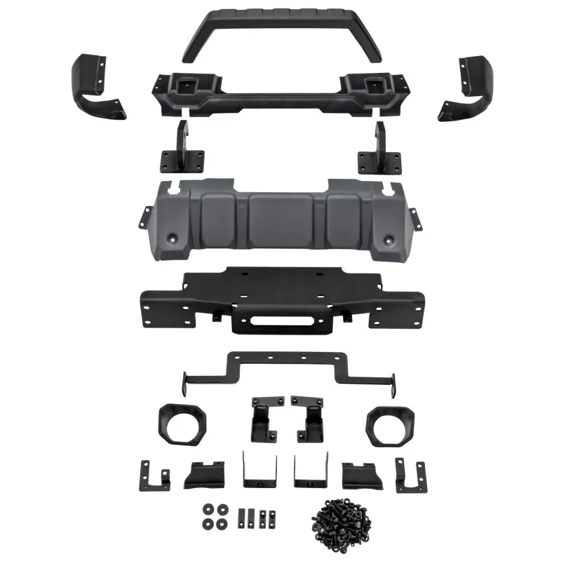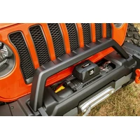 We could tell you what's behind the name, but we would prefer to define it. The Venator represents a sharp departure from typical bumper design- a dominant form, carefully crafted in clay and then forged in steel. Muscular contours and chiseled facets combine with a narrow boulder-scaling profile, creating a bumper that clearly complements the overall aesthetics of the JL/ JT, rather than fighting them. The Venator's modern design features massive recovery tow hooks and a Winch tray, built-in and capable of supporting a 12,500 lb. Winch, keeping you equipped for the unexpected. To top off this ultimate bumper package, we've created a stylized overrider with all the visual impact the Venator deserves. With a square sculpted frame and scalloped cross bar that accents the Jeep's iconic slatted grille, the Venator Stubby Front Bumper impresses with a true inspiration of design.